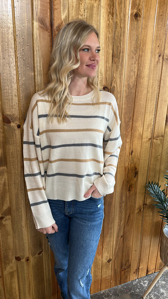 * Trendy Striped Design – Features chic color block stripes in beige, apricot, pink, and gray tones, perfect for fall fashion and everyday wear. * Soft & Breathable Fabric – Made of acrylic and cotton blend, mid-weight knit provides comfort, warmth, and breathability for cooler seasons. * Relaxed Loose Fit – Designed with a round neck, long sleeves, and a slouchy silhouette for effortless layering and a laid-back streetwear vibe. * Versatile Styling – Pairs easily with jeans, skirts, or leggings for casual outings, office wear, or cozy weekends at home. *