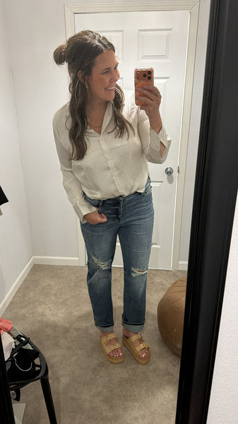 Satin Pin Striped Button Up