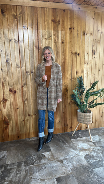 Elevate your wardrobe with this chic tweed midi open front blazer, designed for timeless sophistication and modern flair. Crafted from textured tweed fabric that has a little bit of stretch with a classic blazer silhouette.