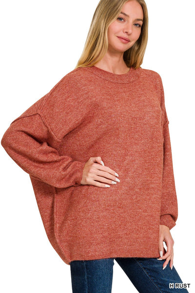 OVERSIZED ROUND NECK RAW SEAM MELANGE SWEATER
