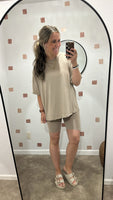 Embrace effortless style and comfort with this loose fit top and biker shorts set. Featuring an oversized short-sleeve top and sleek high-waisted biker shorts, this set is perfect for lounging or running errands in style. Crafted from soft, stretchy fabric, it offers a relaxed yet polished look for everyday wear. -Oversized short-sleeve top for a casual and trendy vibe -High-waisted biker shorts with a snug and secure fit -Soft, stretchy fabric for ultimate comfort -Perfect for lounging, workouts, or casual outings top and biker shorts set, loose fit two-piece set, oversized top and shorts set, comfy lounge set, casual two-piece outfit, high-waisted biker shorts set, women's relaxed fit set